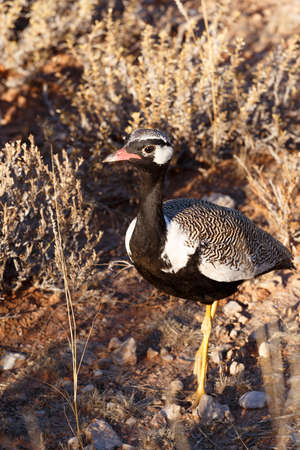 Male Northern Black Korhaan (Eupodotis afraoides) in the Kgalagadi National Park, South Africa