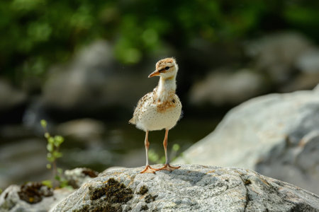 Baby bird in the forest. Selective focus. Toned.