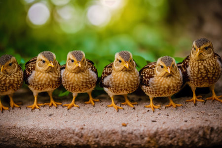 Group of birds guarding their territory in a defiant attitude