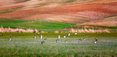 Beautiful wild bird in the meadow. Tetrax tetrax