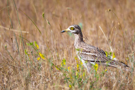 Northern Thick-knee, Burhinus indicus, single bird in grass, South Africa
