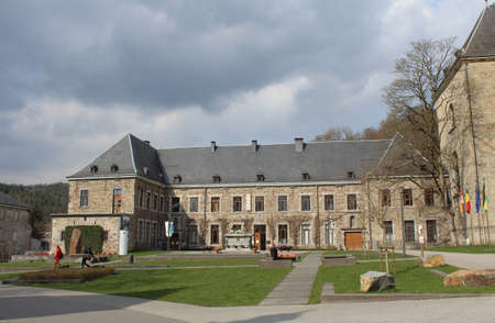 MALMEDY, BELGIUM, 14 APRIL 2021: Exterior view of the Malmundarium, local history museum in Malmedy. The former monastery is a popular tourist attraction in the Province of Liege.