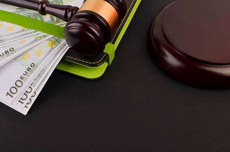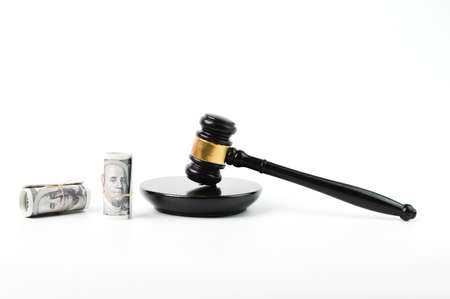 Judge gavel and money banknotes isolated on a white background. Conceptual image