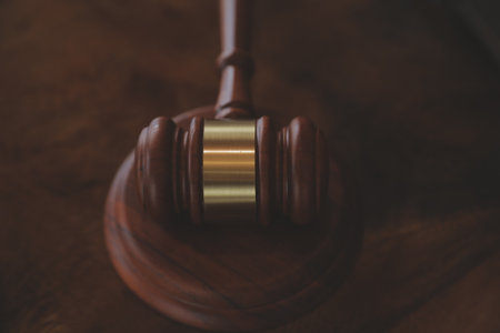 justice and law concept judge the gavel,working with digital computer law firms giving confidence