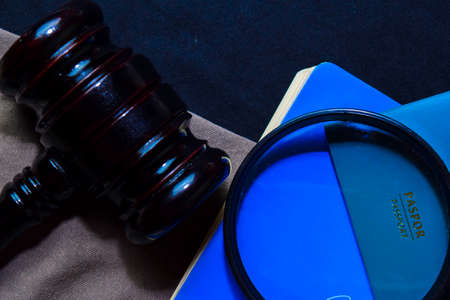 Passport and Black Judges gavel on office desk. Immigration law concept