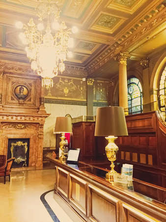 Brussels, Belgium circa January, 2020: Luxury interior design of five star Hotel Metropole in Brussels, Belgium