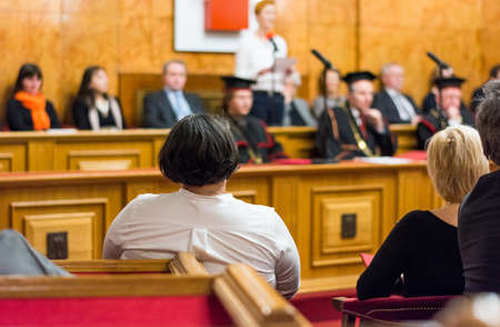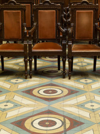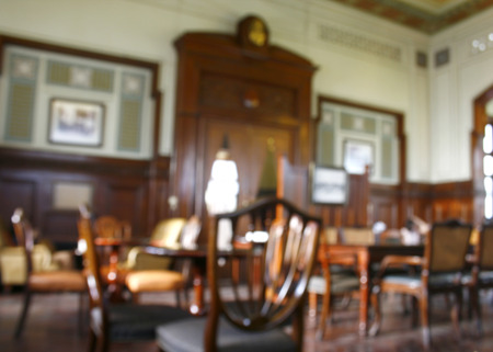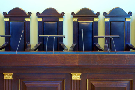 Fragment of empty court room with vintage furniture