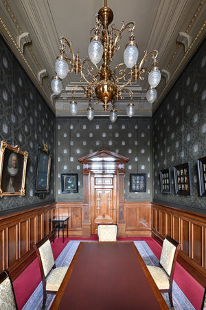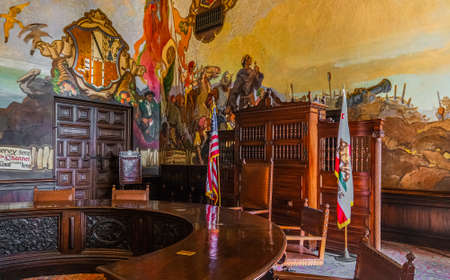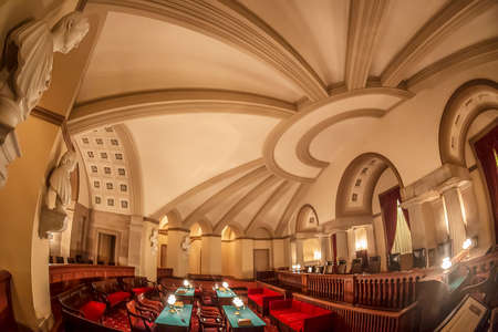 Trenton, New Jersey, United States of America – September 6, 2016. Senate Majority Conference room of New Jersey State House in Trenton, NJ. Designed to house the Supreme Court, this room now quarters the Senate majority caucus. A caucus is a gathering