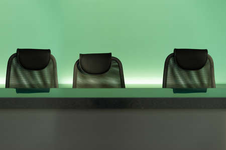Empty chairs. Three workplaces. Unemployment.