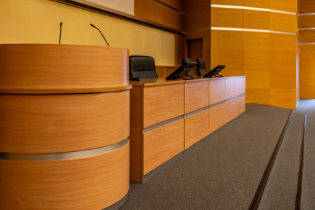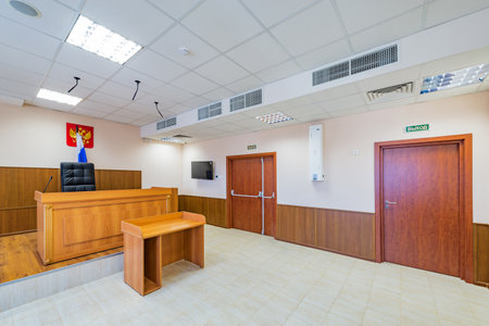 Empty courtroom interior.