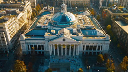 A striking image of a stately government building, featuring a large dome and columns, reflected beautifully in a serene pool in front.. AI Generation