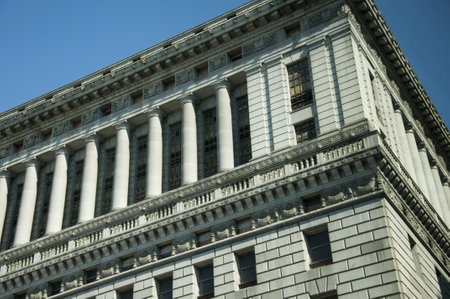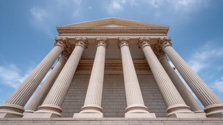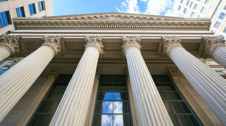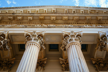 Neoclassical Courthouse Facade with Corinthian Columns Upward Perspective