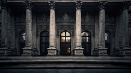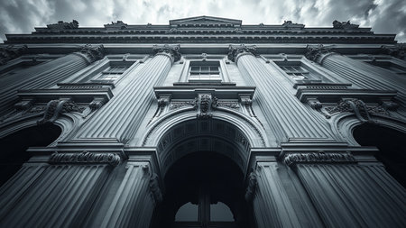 a close-up of a classical facade, with its intricate details and columns, created with generative ai