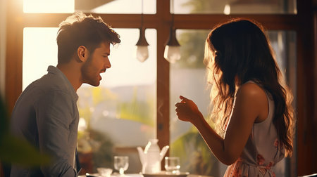Boyfriend and girlfriend having an emotional conversation in nature.