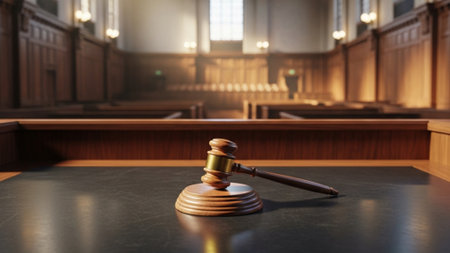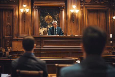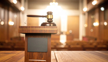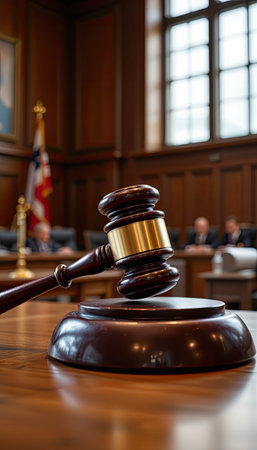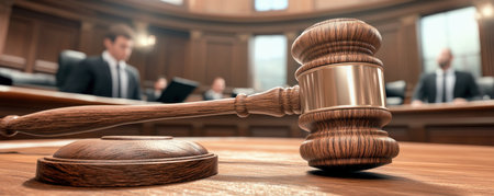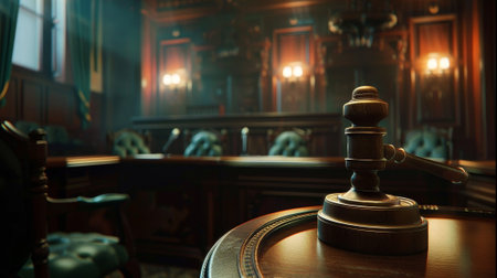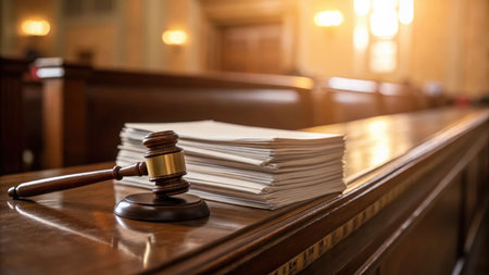 Legal proceedings in courtroom judge's gavel and legal papers professional environment insightful viewpoint