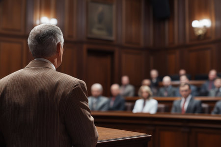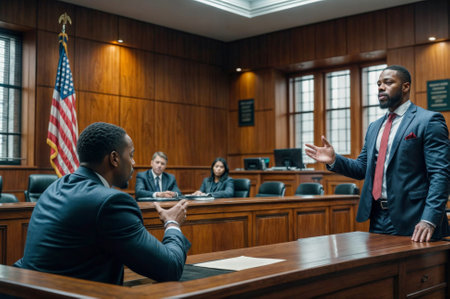 Passionate lawyer defends client with convincing arguments in court., generative AI