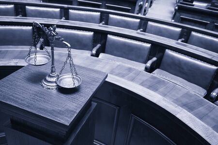 Symbol of law and justice in the empty courtroom, law and justice concept