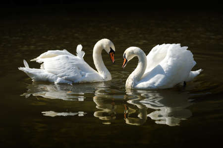 swans in love in the lake