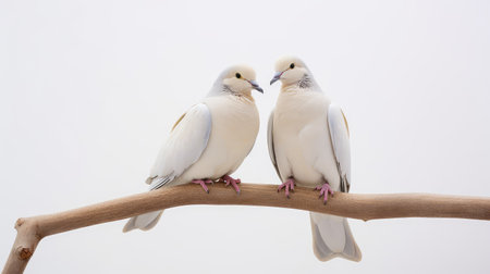 pair of doves perched on a tree branch together, created with generative ai