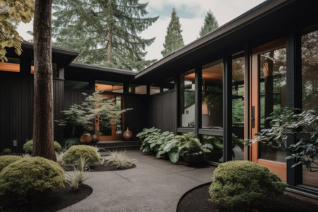 midcentury modern home with exterior and interior renovations, including new windows and doors, created with generative ai