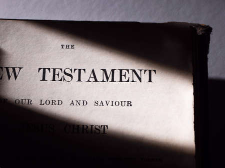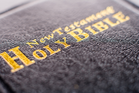 Close up of Holy Bible book with text in it. Shallow depth of field.