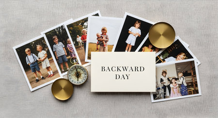 High-angle, top-down cinematic photo of a corkboard collage covered in realistic instant camera phot
