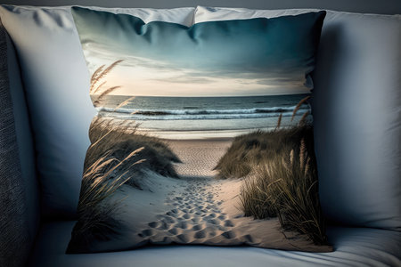 pillow with a tranquil beach scene, perfect for winding down at the end of the day, created with generative ai