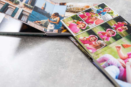A close up photo of an open photo album filled with beautiful landscape and nature images. The album has a vintage feel and is perfect for adding a touch of nostalgia and warmth to your designs.