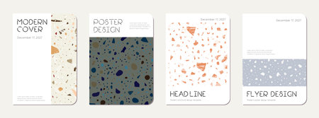 School diary cover design. Terrazzo abstract background made of natural stones, granite, quartz and marble. Venetian terrazzo texture school diary template.