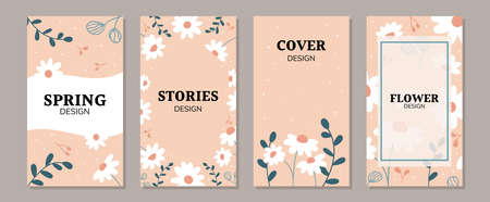 Set of spring daisy flowers backgrounds for social media posts and stories, promotional content, banners and cover design templates. Trendy pastel colors. Vector illustration.