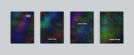 Set of vector cover templates. Dark fantastic acid colors splash hand painted psychedelic tie dye blurred background. For flyers, posters and placards design