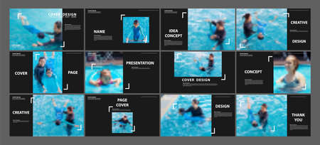 Presentation vector templates, multipurpose template for presentation slide, flyer, brochure cover, infographic report. Background template with lines, photo place for business design. Minimal style.