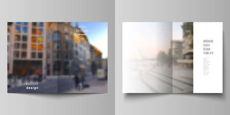 Vector layout of two A4 cover mockups design templates for bifold brochure, flyer, cover design, book design, brochure cover. Abstract halftone effect decoration with dots. Dotted pattern decoration.