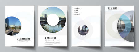 A4 brochure layout of covers design templates for flyer leaflet, A4 brochure, report, magazine cover, book design with abstract circle banners. Social media web banner. Social network photo frame