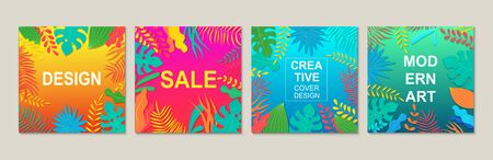 Abstract modern square design templates with floral elements. Design trendy banner backgrounds for advertisements and posters.