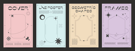 Brutalism abstract cover collection. Simple geometric shapes. Vector illustration template