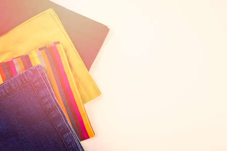 Different Color Natural Textile Napkin Close Up. Food Prop Fabric. Linen Cotton Table Cloth.