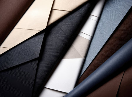 From above layout of colorful cardboard sheets in brown and gray shades. Created with Generative AI technology