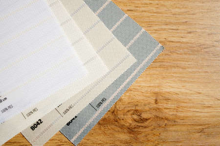 Samples of colored fabric for buyer's choice. Example fabric. Copy space for text