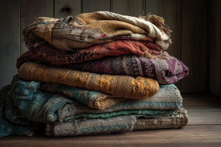 stack of fabrics of varying textures and colors, created with generative ai
