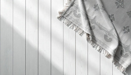 Elegant blanket with fringe on a rustic white surface