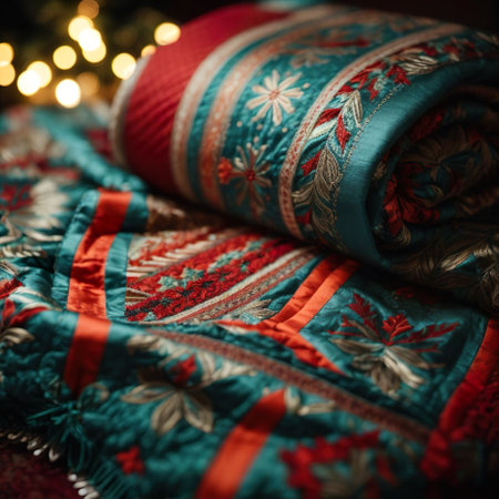 Close-up showcasing intricate stitches and patterns in traditional quilted fabrics
