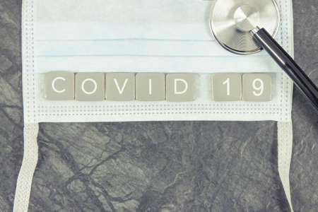 Inscription covid-19 with protective mask and stethoscope. Novel Chinese coronavirus outbreak. 2019-nCoV.