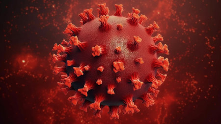 3d illustration of a contagious coronavirus covid 19 with red spikes floating in a dark cellular environment