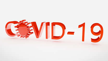 3D-Illustration of COVID-19 and coronavirus texts on a white background.