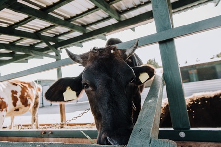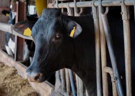 Cow in the barn. Concept of agriculture and livestock farming.