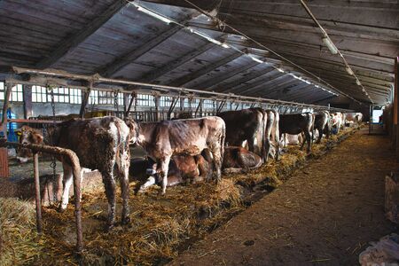 Cows in a farm. Cowshed. Dairy cows.