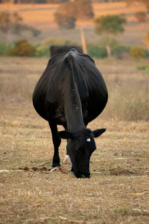 Adult cow in a Brazilian farm with selective focus
