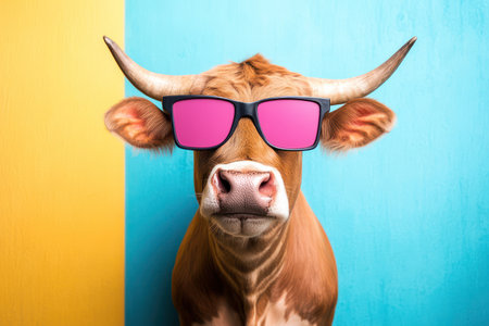 character face animal funny colourful cute head portrait cow sunglasses. Generative AI.