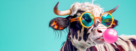 Fashionable Cow with Sunglasses Blowing Bubble Gum